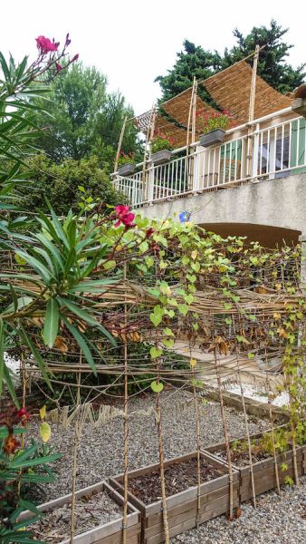 L’hébergement est constitué de deux chambres doubles climatisées aménagées en suite au premier étage de la maison avec salle de bain, salle d’eau, deux WC ainsi qu’un petit salon et une terrasse ensoleillée surplombant le parc et aménagée d’un salon de jardin.